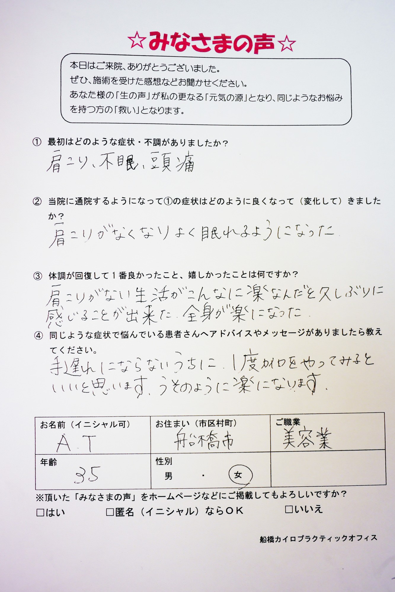 船橋市で整体なら船橋カイロプラクティックオフィス 船橋市の船橋カイロプラクティックオフィスの診療時間